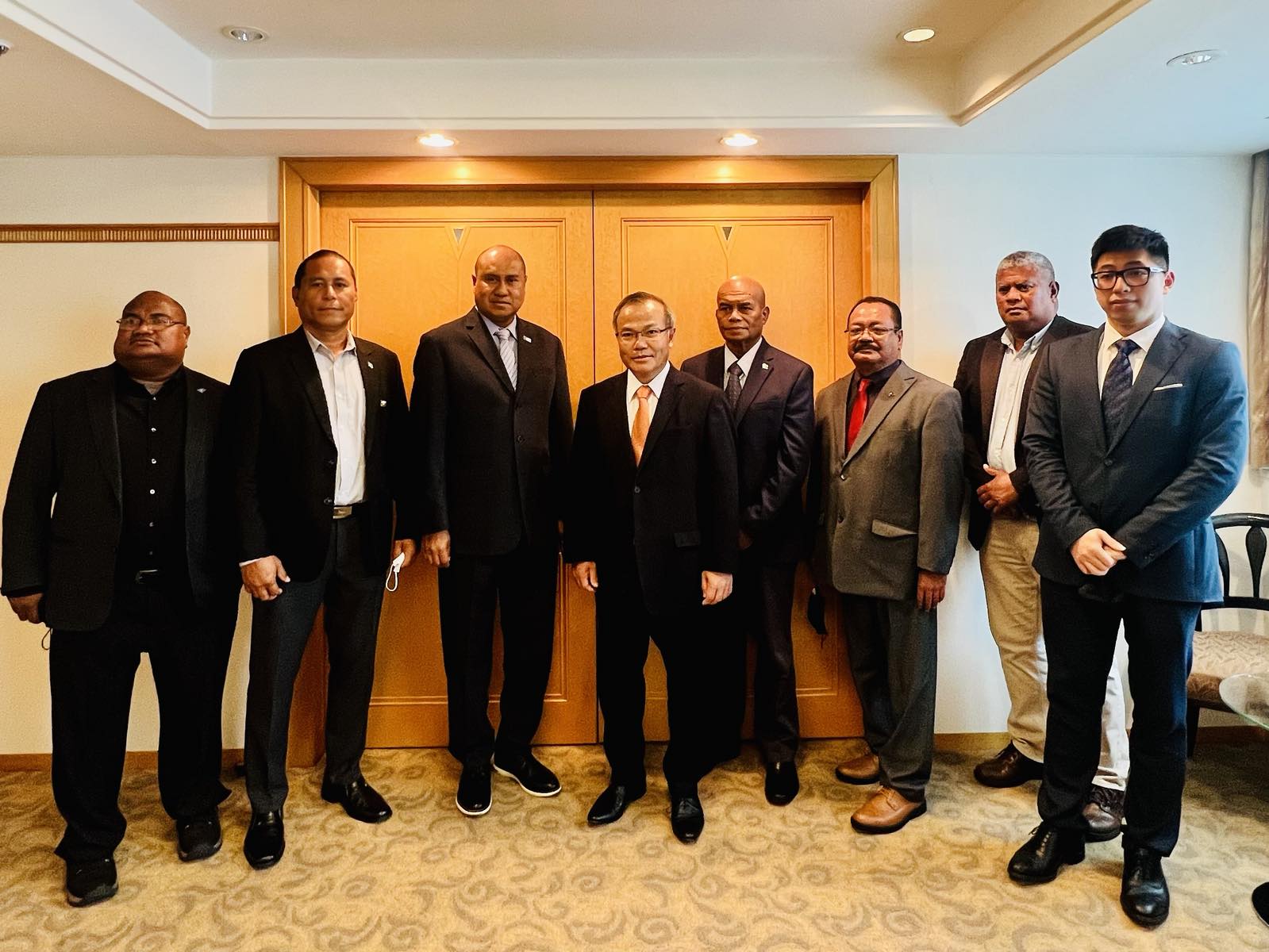 Đại sứ Việt Nam tại Nhật Bản Vũ Hồng Nam gặp làm việc với Bộ trưởng Nhân lực, Văn hoá, Du lịch và Phát triển Palau Ngiraibelas Tmetuchl, Bộ trưởng Cơ sở hạ tầng Palau Charles I. Obichang
