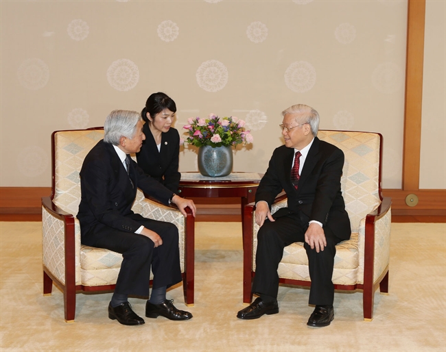 Party General Secretary Nguyen Phu Trong met with Japanese Emperor Akihito. Photo: Tri Dung/VNA