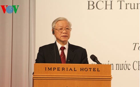 Party General Secretary Nguyen Phu Trong attended the Vietnam-Japan Investment, Trade, Labour Cooperation Forum in Kanagawa Province. Photo: Tri Dung/VNA
