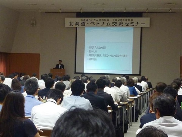 Đại sứ đã tham dự và có bài phát biểu giới thiệu về tiềm năng hợp tác với Việt Nam tại Hội thảo của Hội Giao lưu Hokkaido-Việt Nam với sự tham dự của hơn 230 đại biểu đại diện cho tất cả các giới trong tỉnh Hokkaido.
