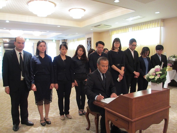 Đoàn cán bộ, nhân viên Đại sứ quán Việt Nam tại Nhật Bản và các cơ quan bên cạnh Đại sứ quán, 3 cơ quan báo chí thường trú tại Tokyo (TTXVN, VTV, Đài Tiếng nói Việt Nam), đại diện cộng đồng người Việt Nam tại Nhật Bản do Đại sứ Vũ Hồng Nam làm Trưởng đoàn, đã viếng và ghi Sổ tang. Đại sứ xúc động viết: “Hơn 80 năm hoạt động cách mạng, nguyên Chủ tịch nước Lê Đức Anh đã có nhiều đóng góp to lớn đối với sự nghiệp cách mạng vẻ vang của Đảng và dân tộc. Đồng chí mất đi là một tổn thất lớn đối với Đảng, Nhà nước và nhân dân Việt Nam. Toàn thể cán bộ nhân viên Đại sứ quán Việt Nam tại Nhật Bản kính cẩn nghiêng mình trước vong linh của đồng chí”.
