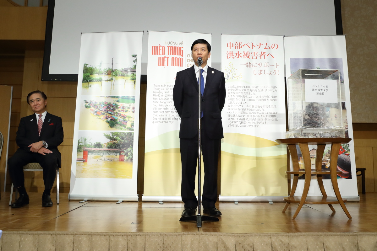 Phát biểu tại buổi lễ, Đại sứ Việt Nam tại Nhật Bản Nguyễn Quốc Cường đã thông báo tình hình lũ lụt và những thiệt hại to lớn về tính mạng và tài sản mà người dân miền Trung Việt Nam vừa trải qua. Đại sứ Nguyễn Quốc Cường cho biết ngay khi miền Trung xảy ra lũ lụt, Đại sứ quán Việt Nam, Hội người Việt Nam và Hội Sinh viên Việt Nam tại Nhật Bản đã hưởng ứng lời kêu gọi ủng hộ, hỗ trợ từ trong nước.