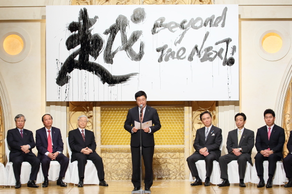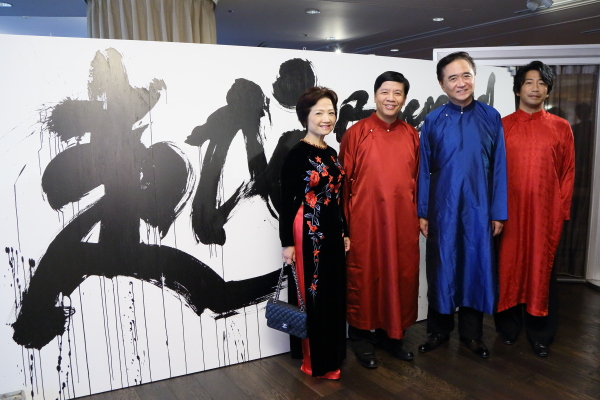 Thống đốc Kanagawa giới thiệu bức tranh của nghệ sỹ thư pháp nổi tiếng Nhật Bản Suzuki Fumio tại Lễ khai mạc Lễ hội "Viet Nam Festa in Kanagawa"