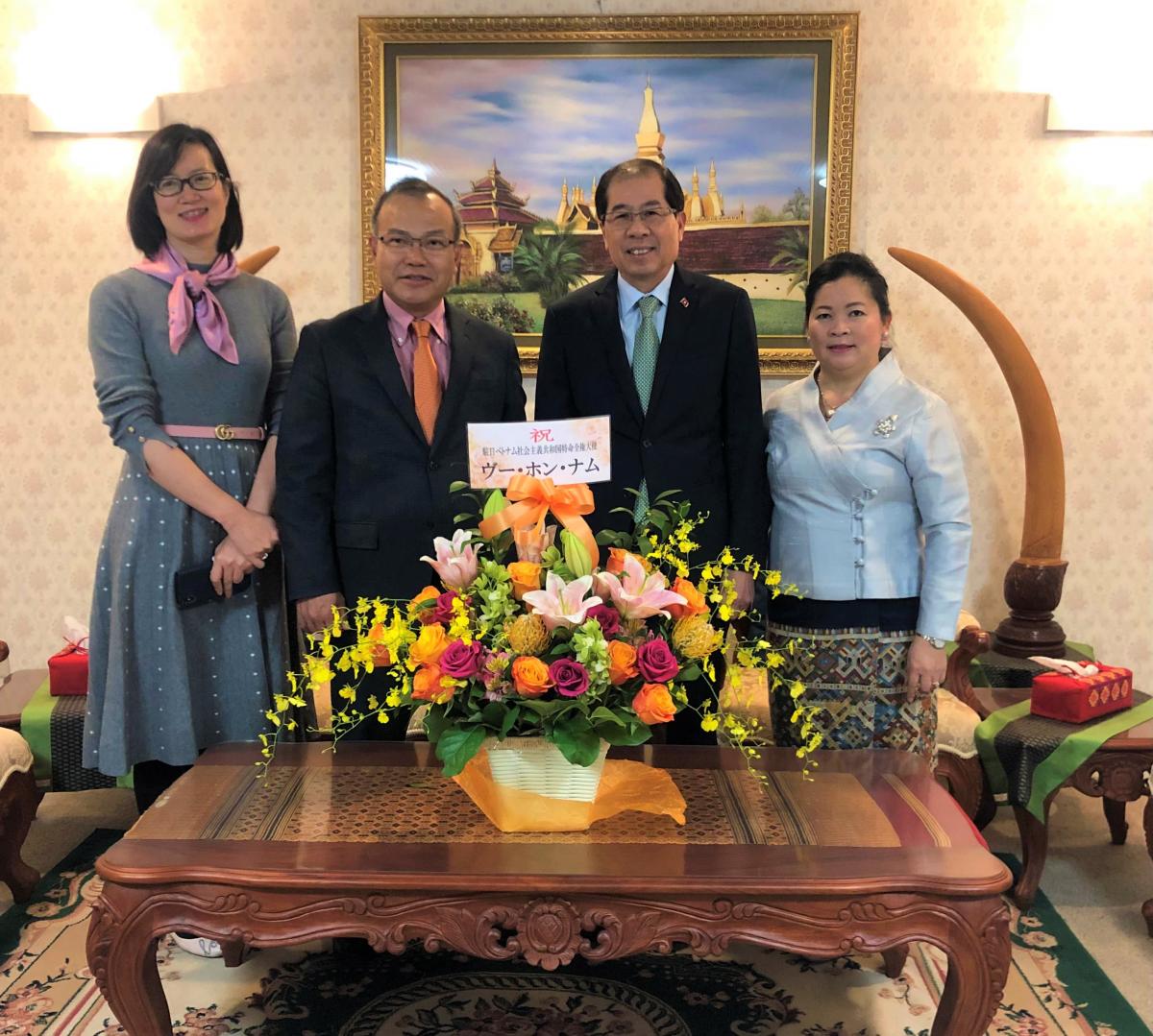 Ngày 27/11, Đại sứ đặc mệnh toàn quyền nước CHXNCN Việt Nam tại Nhật Bản Vũ Hồng Nam đã dẫn đầu Đoàn đại biểu Đại sứ quán Việt Nam tại Nhật Bản đến Đại sứ quán Lào tại Nhật Bản chúc mừng 45 năm Quốc khánh Lào (2/12/1975 - 2/12/2020).
