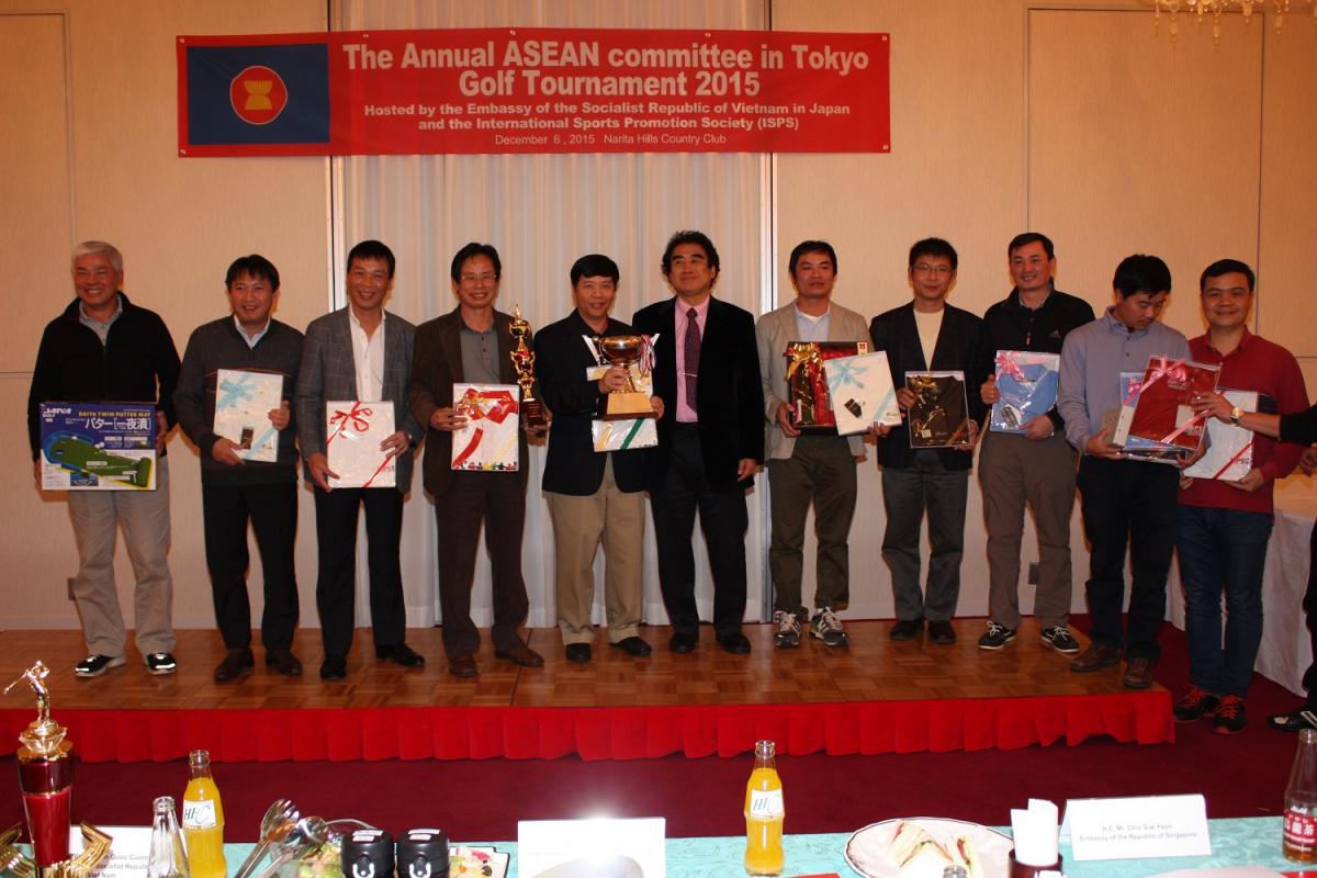 Đội cán bộ, nhân viên Đại sứ quán Việt Nam đã xuất sắc lần đầu tiên đoạt Giải Vô địch đồng đội năm 2015 trước sự cổ vũ nhiệt tình của tất cả bạn bè ASEAN và Nhật Bản.