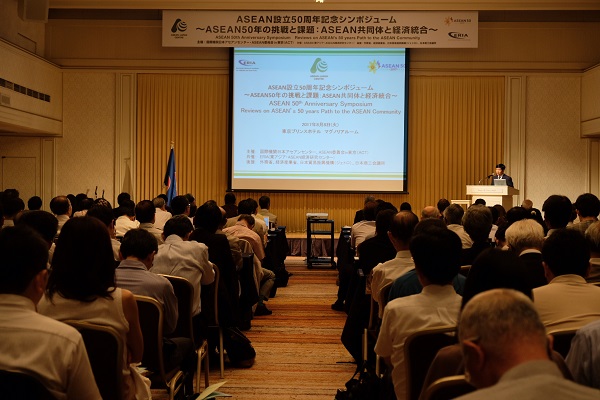 Ngày 8/8, tại Tokyo, Trung tâm ASEAN Nhật Bản (AJC) phối hợp với Viện nghiên cứu kinh tế ASEAN và Đông Á (ERIA) đã tổ chức Hội thảo với chủ đề “Con đường 50 năm hướng tới Cộng đồng ASEAN” (ASEAN’s 50 years Path to the ASEAN Community) với sự tham dự của đông đảo Đại sứ, Đại diện của Đại sứ quán 10 nước ASEAN và các nước Đối thoại, cùng hơn 300 đại biểu chính quyền, giới nghiên cứu và cộng đồng doanh nghiệp Nhật Bản.