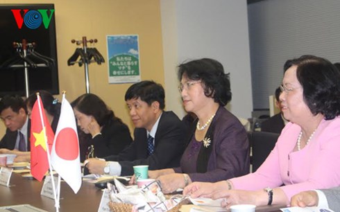 Phó Chủ tịch Quốc hội cũng đánh giá cao dự án theo dõi sức khỏe bà mẹ và trẻ em mà JICA đang tiến hành tại Việt Nam, và đề nghị nhân rộng mô hình này ra 63 tỉnh thành sau khi kết thúc quá trình thử nghiệm hiện nay. Ông Hideaki Domichi chúc mừng Phó Chủ tịch Quốc hội Nguyễn Thị Kim Ngân đến Nhật Bản tham dự hội đồng toàn cầu vì phụ nữ, và cho biết Nhật Bản đang nỗ lực nâng cao vai trò của phụ nữ trong xã hội.