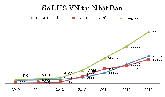 Chú thích: số liệu do Cơ quan hỗ trợ sinh viên Nhật Bản JASSO thống kê tính đến thời điểm 1 tháng 5 hàng năm
