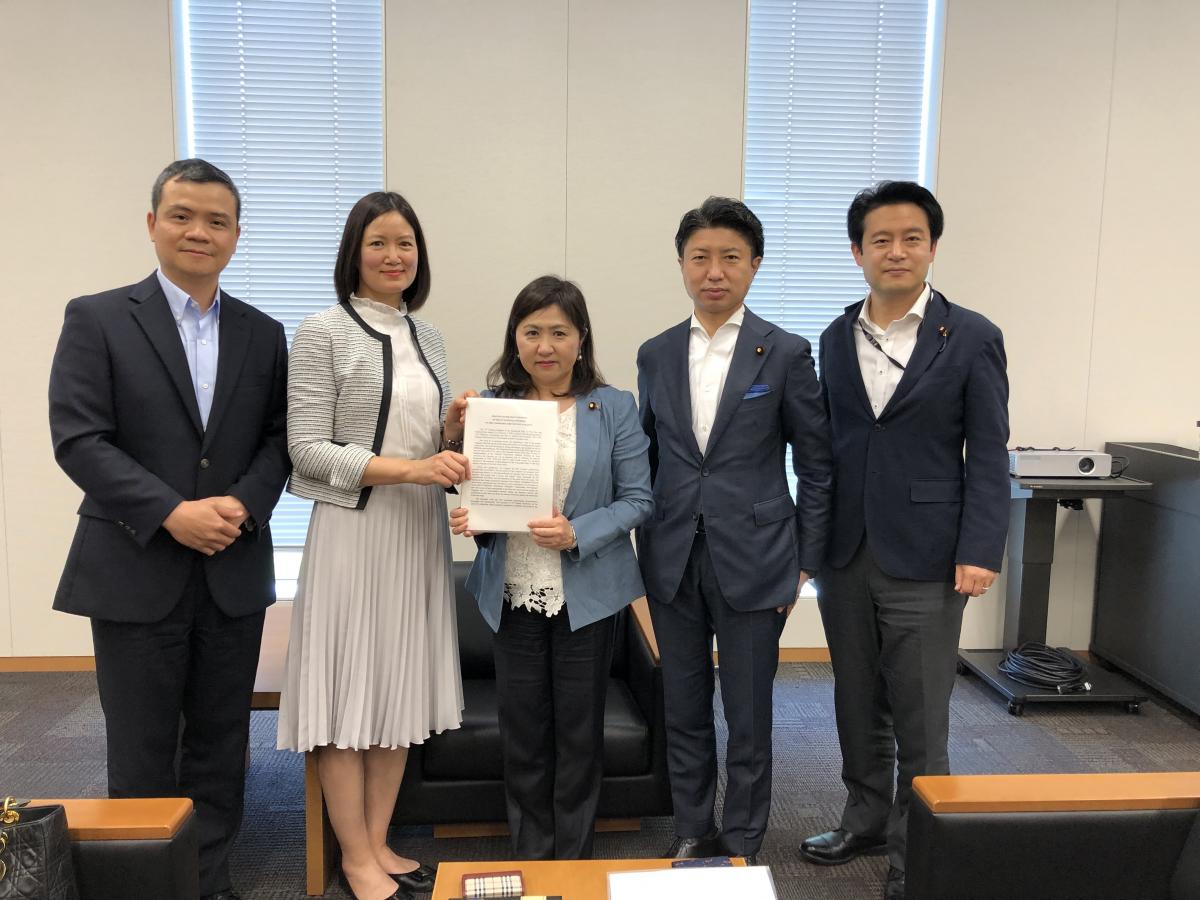 Ngày 25/5, Công sứ Lâm Thị Thanh Phương đã gặp Hạ nghị sỹ Kamei Akiko, Trưởng ban quốc tế Đảng Dân chủ Lập hiến, và Hạ nghị sỹ Sakurai Shu, Hạ nghị sỹ Aoyagi Yoichiro, thông báo kết quả Đại hội tới Đảng Dân chủ Lập hiến.