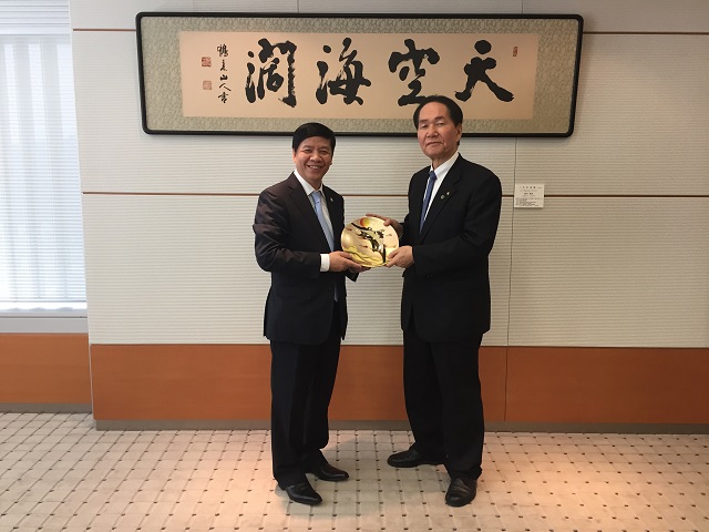 Tại tỉnh Tokushima, Đại sứ Nguyễn Quốc Cường đã gặp Thống đốc Iizumi Kamon và trao đổi về tiềm năng hợp tác trên các lĩnh vực thế mạnh của tỉnh, nhất là nông nghiệp, du lịch và phát triển nguồn nhân lực.