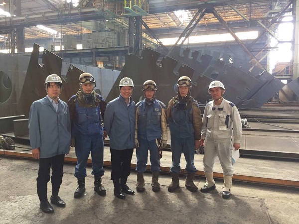 Đại sứ Nguyễn Quốc Cường và tu nghiệp sinh Nhà máy đóng tàu Ariake