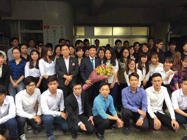 Đại sứ Nguyễn Quốc Cường và du học sinh trường Nhật ngữ Kyushu